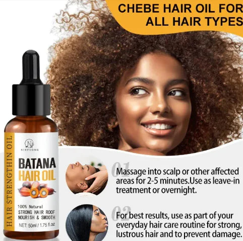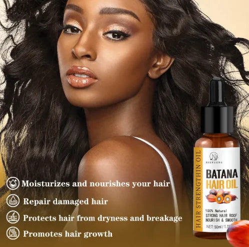 Discover the natural power of Batana Oil Hair Care, a rich, nourishing oil known for promoting healthy, vibrant hair. Sourced from the American palm tree, this pure oil deeply conditions to help repair damage, reduce breakage, and restore shine.